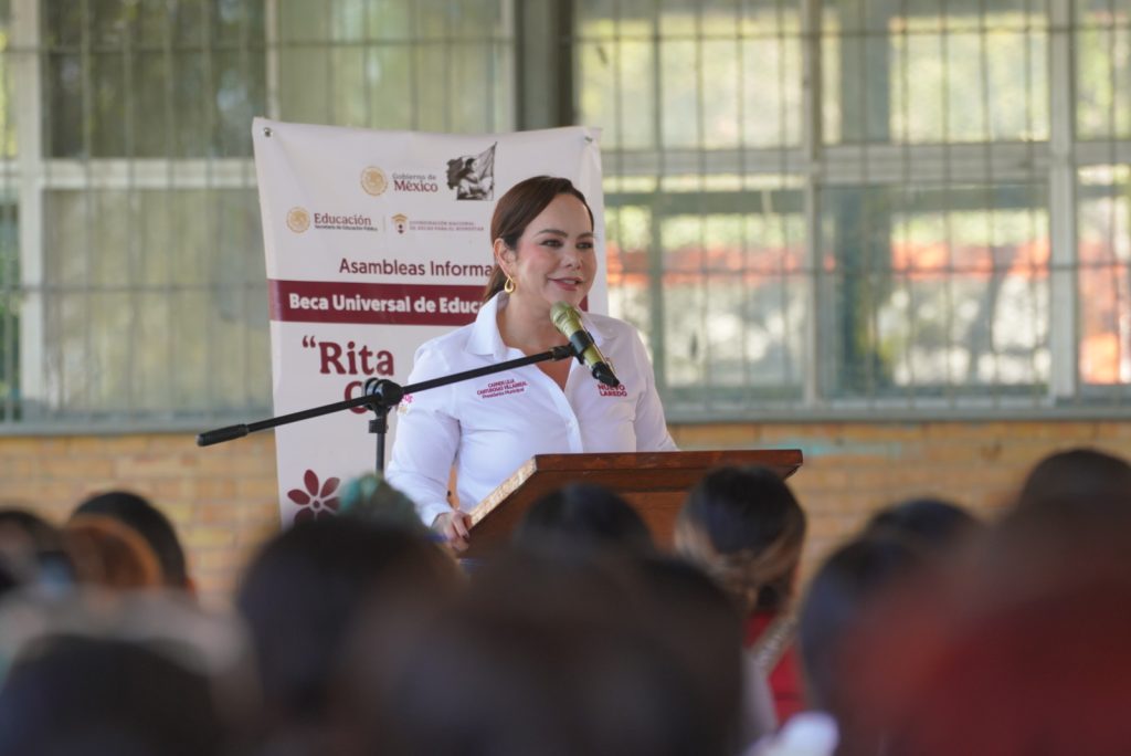 “Es un gusto acompañarlos en esta asamblea informativa sobre la beca ‘Rita Cetina’ que representa un paso significativo en la equidad educativa de nuestro país asegurando que todos los estudiantes de nivel secundaria tengan acceso a los recursos necesarios para continuar con su formación académica”, manifestó.