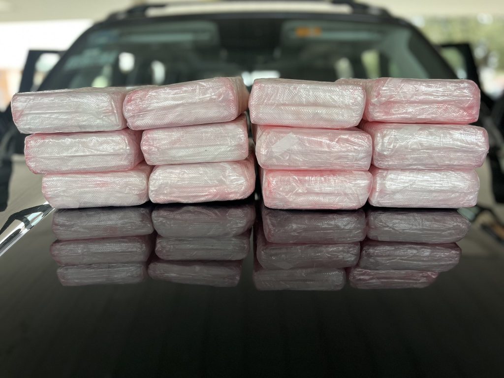 Los oficiales de la CBP realizaron un examen secundario que incluyó la utilización de un canino de la CBP y un sistema de inspección no intrusiva. Tras un examen físico adicional, los oficiales de la CBP descubrieron 12 paquetes que contenían un total de 27,91 libras de presunta cocaína dentro de los guardabarros y los paneles inferiores del vehículo. Los narcóticos tenían un valor estimado en la calle de $372,659.