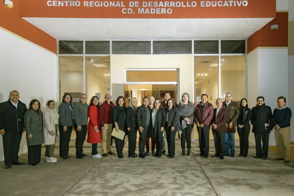 Acompañados por sus equipos de trabajo, el coordinador Nacional de Becas para el Bienestar, Julio César León Trujillo, y la secretaria de Educación de Tamaulipas, Lucía Aimé Castillo Pastor, sostuvieron una reunieron informativa en el Centro Regional de Desarrollo Educativo (CREDE) de Ciudad Madero.