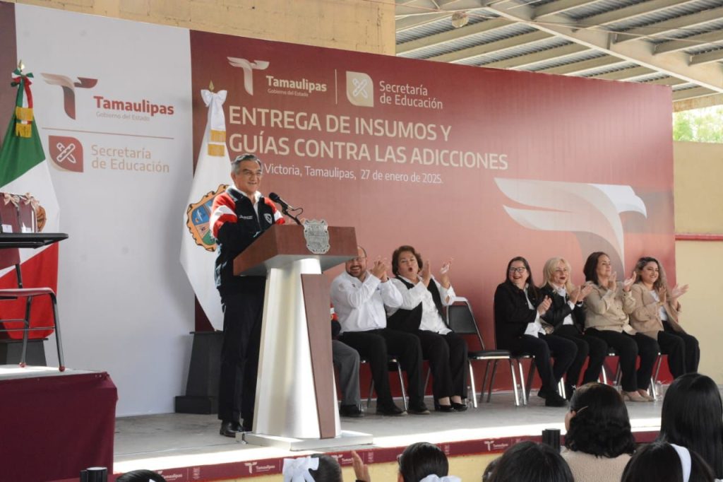 Ciudad Victoria, Tamaulipas.- En un esfuerzo sin precedentes para que las y los alumnos de educación básica tengan las herramientas necesarias para su formación académica, el gobernador de Tamaulipas Américo Villarreal Anaya hizo entrega de 305 “tablets”, además de mobiliario escolar por el orden de los 27.1 millones de pesos que beneficiará a 23 mil 343 estudiantes de 30 municipios y, de manera simbólica, distribuyó 305 mil 377 guías contra las adicciones, que serán repartidas a estudiantes de educación media superior.