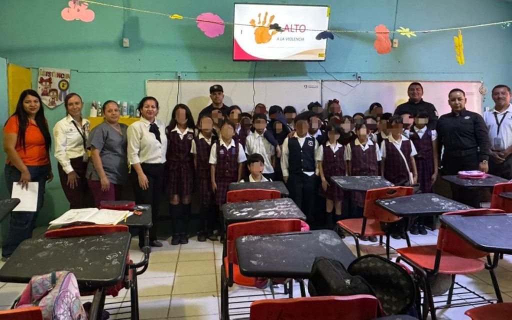 Nuevo Laredo, Tamaulipas.- Mediante un taller escolar dirigido a estudiantes del cuarto grado de la Escuela Primaria Profesor Venancio López Juárez, personal de la Guardia Estatal de Género avanza en la construcción de ambientes seguros para la niñez tamaulipeca, tanto en entornos físicos como digitales.