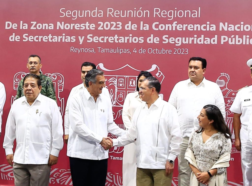 Por su parte, el secretario de Seguridad Pública de Tamaulipas, Sergio Chávez García, expuso las acciones emprendidas en el gobierno de Américo Villarreal y recordó que como parte de esa colaboración regional se firmó un acuerdo marco de colaboración entre los gobernadores de Veracruz, San Luis Potosí, el representante de Nuevo León y el mandatario tamaulipeco.