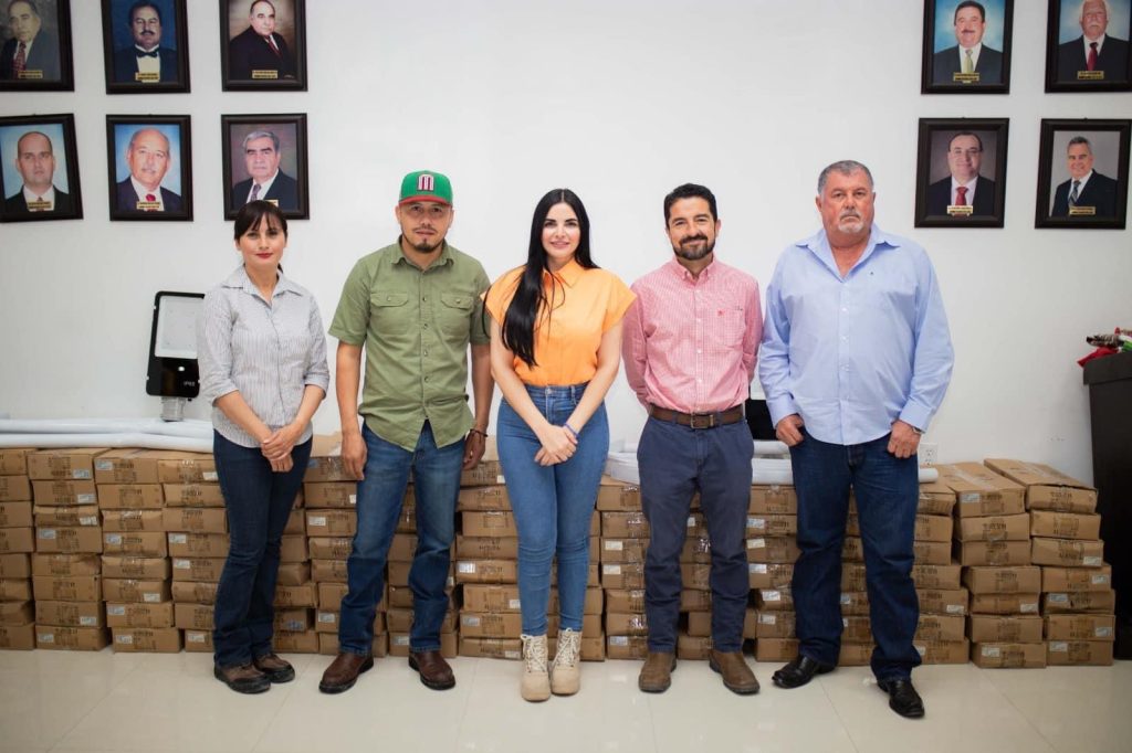 Gustavo Díaz Ordaz, Tam.- Como parte de las acciones para brindar un entorno seguro para los Díazordacenses y continuar la transformación del municipio más joven de Tamaulipas, la Alcaldesa Nataly García Díaz, hizo entrega de 129 lámparas suburbanas tipo LED de 100w para mejorar la iluminación y reponer las lámparas dañadas en distintos sectores del municipio.