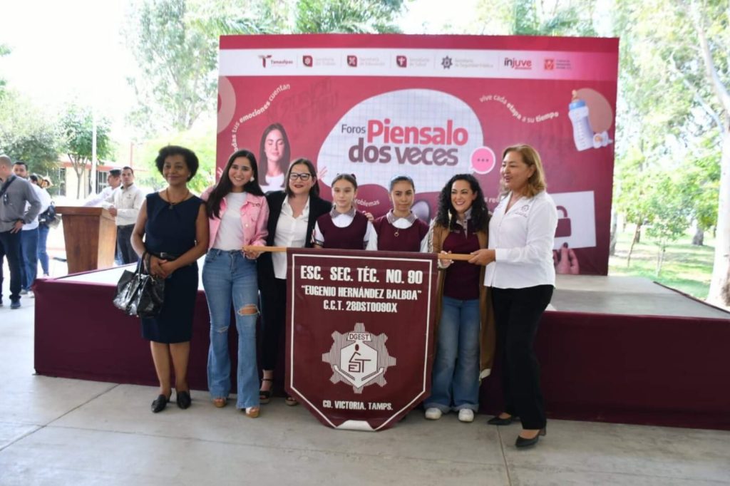 La secretaria Olga Sosa Ruíz, informó que la campaña de concientización “Piénsalo Dos veces”, se realizó en la Escuela Secundaria “Eugenio Hernández Balboa”, de Ciudad Victoria y contó con la participación de la secretaria de Educación Lucía Aimé Castillo Pastor; la titular de Finanzas, Adriana Lozano y Katalyna Méndez Cepeda, titular del INJUVE, quienes manifestaron su total respaldo a las juventudes, a nombre del gobernador Américo Villarreal Anaya.