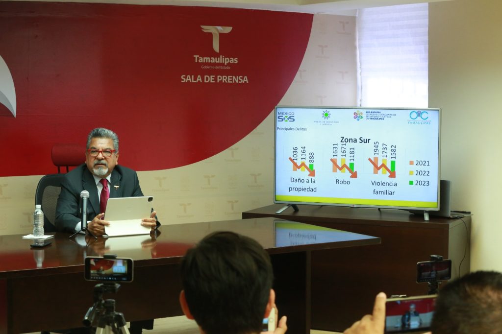 Ciudad Victoria, Tamaulipas.- La Vocería de Seguridad de Tamaulipas afirmó que sigue a la baja la incidencia delictiva en el estado, lo cual se demostró con un estudio realizado por la Red Estatal de Mesas Ciudadanas de Seguridad y Justicia, a través del Observatorio Ciudadano para conocer los principales delitos en los municipios de Tamaulipas en el 2023 y compararlo con los dos años inmediatos anteriores.