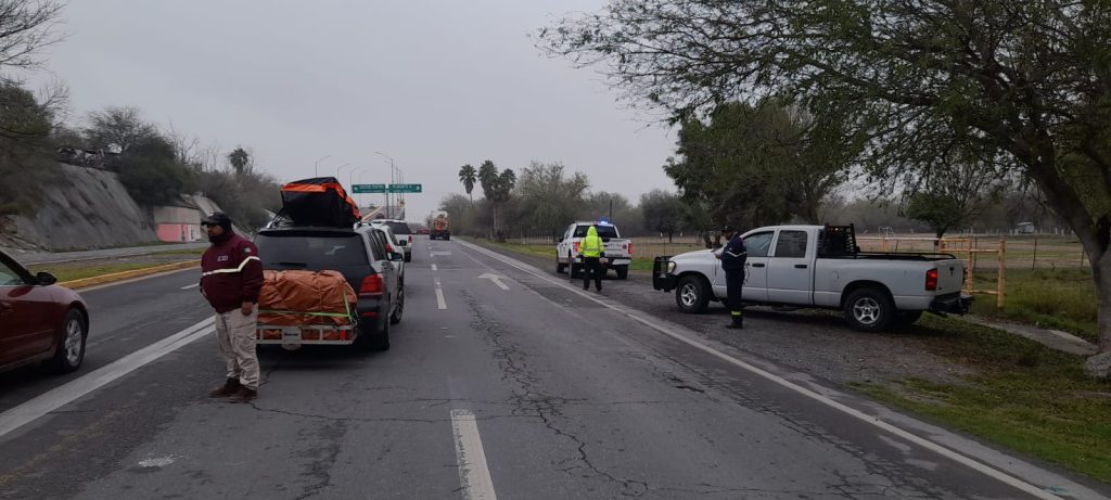 Personal de Tránsito, Guardia Municipal y Dirección de Protección Civil y Bomberos, trabajan coordinadamente apoyar a nuestros héroes paisanos y a los ciudadanos locales para una mejor vialidad; en estos momentos, reportan que la fila para ingresar al Puente Internacional II “Juárez-Lincoln” se encuentra hasta la altura de la calle Madero.