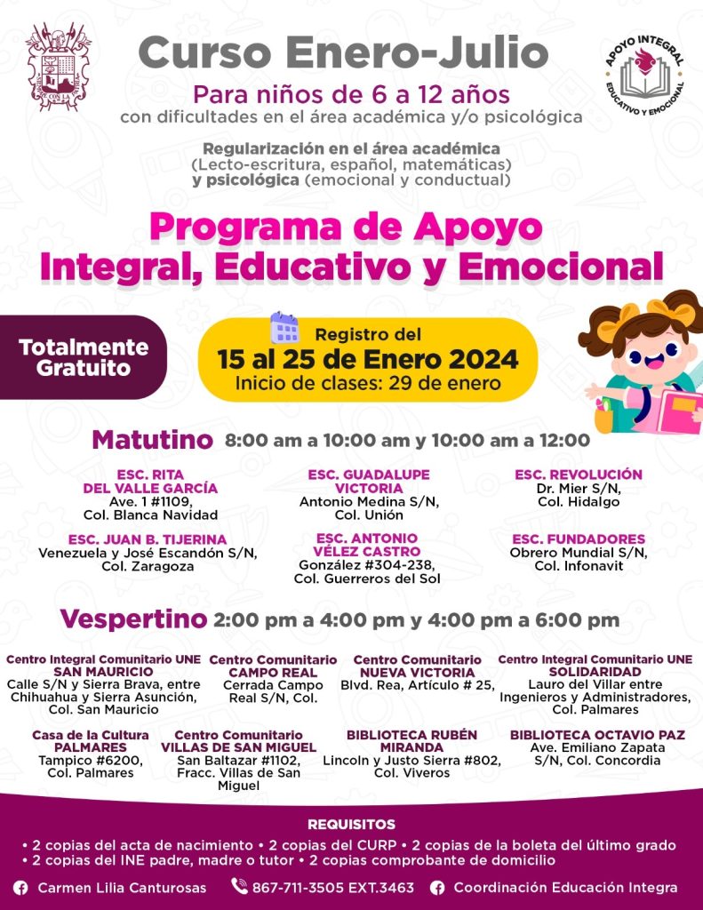 Las inscripciones estarán abiertas del 15 al 25 de enero y como requisitos se solicita la siguiente documentación en copia: acta de nacimiento del menor, CURP, calificaciones del último grado en curso, comprobante de domicilio y credencial de elector del padre, madre o tutor.