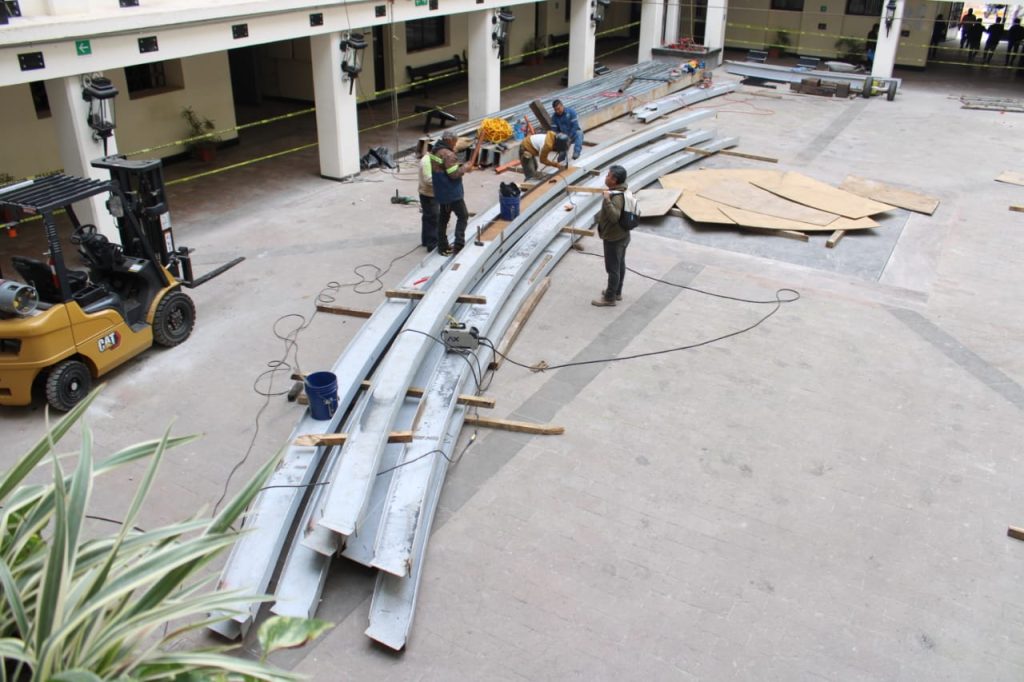 En primera instancia, el titular de la SOP, revisó a detalle el avance de los trabajos que se realizan en la explanada de Palacio de Gobierno, que contemplan la instalación de un domo que cubrirá la misma, así como la instalación de los escudos oficiales de los 43 municipios de la entidad alrededor de la misma explanada.