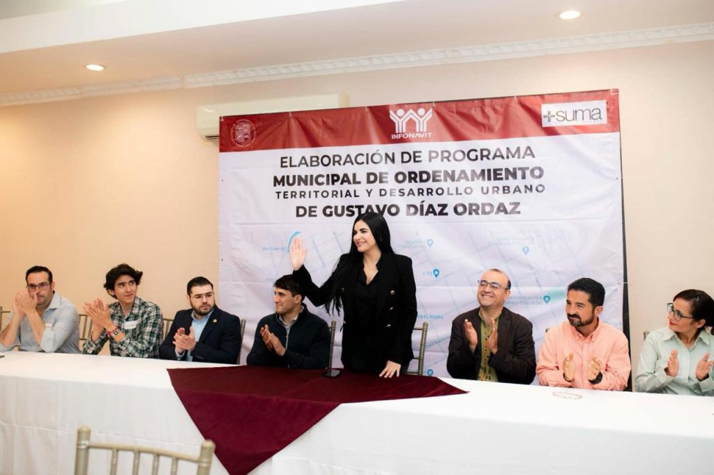 Gustavo Díaz Ordaz, Tam.- La Alcaldesa Nataly García Díaz inauguró y participó en el segundo taller etapa Diagnóstico del programa municipal de ordenamiento territorial y desarrollo urbano, en el que estuvo presente el Maestro Adrián Acevedo de las oficinas centrales de Infonavit en la CDMX, funcionarios estatales, municipales, y representantes del sector empresarial.