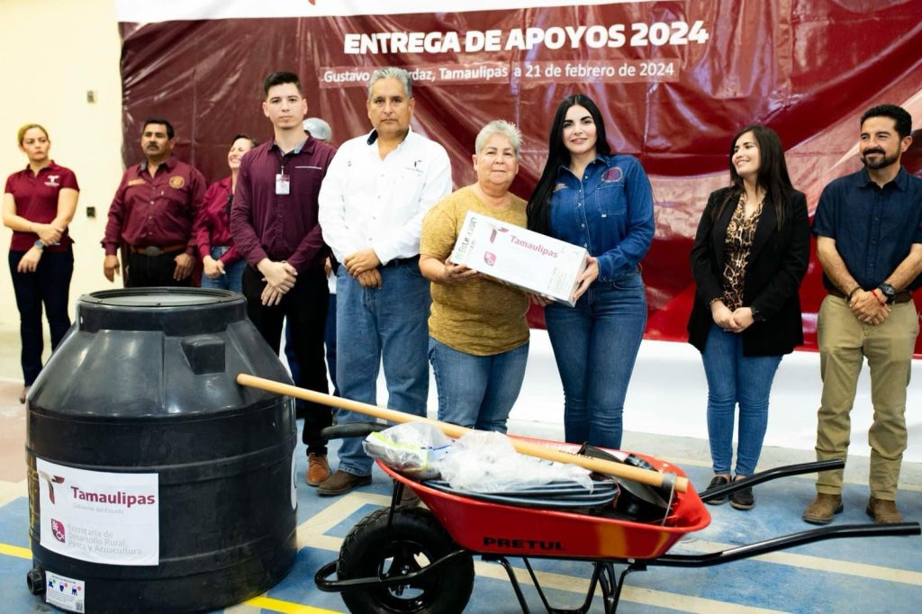 Gustavo Díaz Ordaz, Tam.- La Alcaldesa Nataly García Díaz presidió este miércoles la entrega de equipos para Huertos de Traspatio y Pisos Firmes, apoyos gestionados ante el Gobierno de Tamaulipas que preside el Dr. Américo Villarreal Anaya, destacando la primera mujer en gobernar el municipio más joven y próspero de Tamaulipas que el trabajo en unidad de los tres niveles de gobierno rinde siempre resultados positivos para todos los Tamaulipecos.