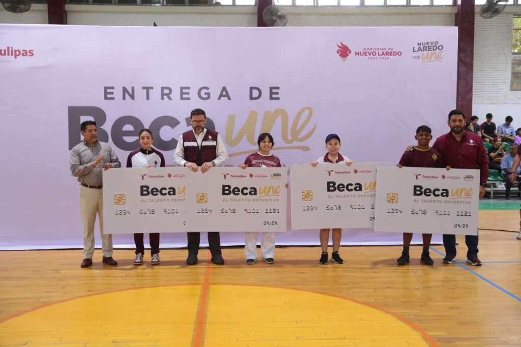 Durante una ceremonia en el Gimnasio “Rafael Elizondo” se realizó la Entrega Simbólica de Tarjetas a Beneficiados del Programa: “Becas UNE al Talento Deportivo” para quienes participaron en competencias regionales, estatales, nacionales e internacionales.