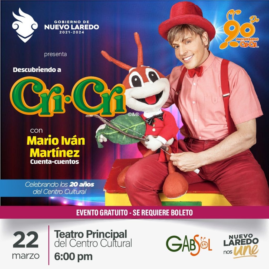 Celebrando 20 años de historias, risas y arte del Centro Cultural, el Gobierno de Nuevo Laredo invita a vivir una velada llena de nostalgia y alegría con el espectáculo “Descubriendo a Cri Cri” con el reconocido cuentacuentos Mario Iván Martínez.