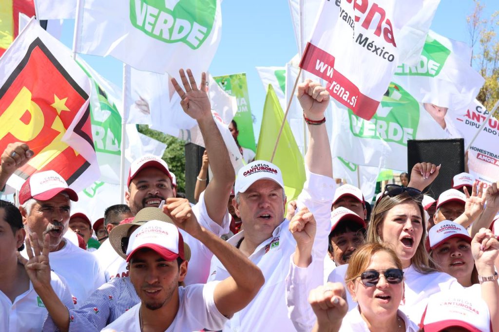 El sonido de los claxons, las porras y muestras de apoyo invadieron el crucero de Reforma y Paseo Colón donde cientos de automovilistas y personas que pasaban por el lugar se detuvieron para respaldar y sumarse al proyecto del candidato de la coalición MORENA, PT y Verde Ecologista, Carlos Canturosas Villarreal.