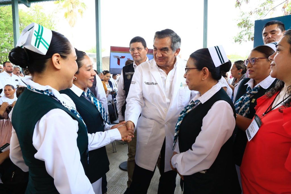 Ciudad Victoria, Tamaulipas. – “En Tamaulipas tenemos la bata bien puesta, todos sumados y comprometidos con el presidente Andrés Manuel López Obrador y con el nuevo modelo de atención a la salud IMSS-Bienestar, para garantizar el servicio médico en forma gratuita a la población sin seguridad social, considerando esto como un derecho humano”, expresó el gobernador Américo Villarreal Anaya.