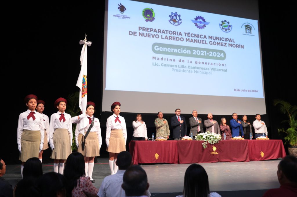 La alcaldesa Carmen Lilia Canturosas fue la madrina de generación quien a través del regidor Francisco Javier Altamirano envió un mensaje invitando a los jóvenes a continuar su preparación académica, seguir fortaleciendo su aprendizaje para que contribuyan en el desarrollo de Nuevo Laredo.