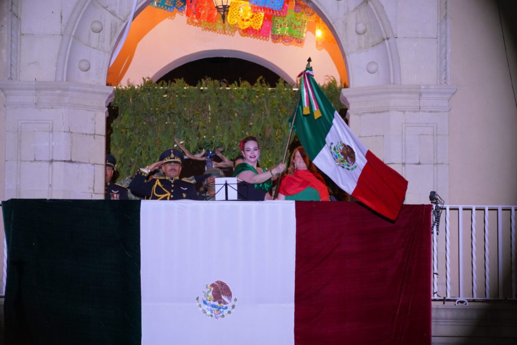 El evento tuvo lugar en la Plaza de la Independencia, donde los asistentes unieron su voz junto a la alcaldesa Carmen Lilia Canturosas Villarreal para corear a los héroes que dieron patria al país y gritar “¡Viva México!”.