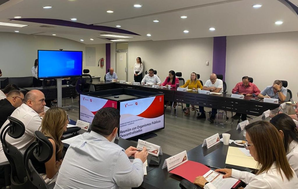 Ciudad Victoria, Tamaulipas. – Con la finalidad de intercambiar experiencias y analizar los programas académicos, rectores y directores de Organismos Públicos Descentralizados (OPD) del sector educativo, sostuvieron una reunión de análisis e intercambio de experiencias con Guadalupe Acosta Villarreal, subsecretario de Educación Media Superior y Superior de la Secretaría de Educación de Tamaulipas (SET).
