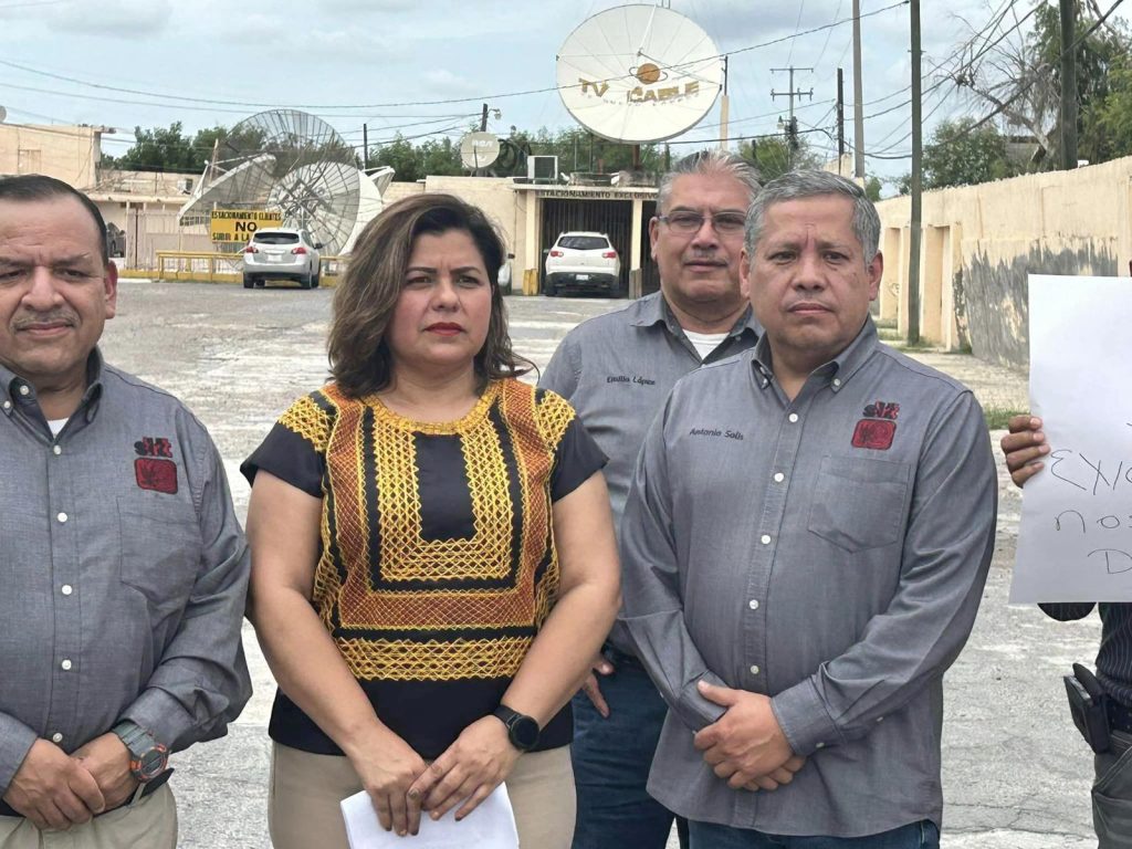 Nuevo Laredo, Tamaulipas.- Trabajadores de Canal 17 XEFE TV (anteriormente conocido como Canal 2) se encuentran en las afueras de las instalaciones de la empresa en protesta por graves incumplimientos laborales. La compañía enfrenta serios problemas económicos que han repercutido en la falta de pago salarial y el incumplimiento de otras obligaciones laborales.