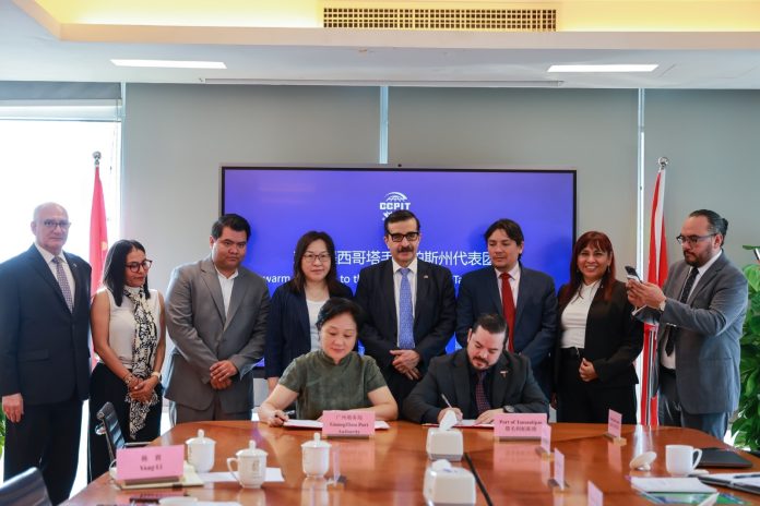Guangzhou, China.- Continuando con las indicaciones del gobernador Américo Villarreal para atraer inversiones y tecnología de punta a Tamaulipas, el secretario de Desarrollo Energético, José Ramón Silva, firmó una carta de intención con el Consejo Chino de Promoción del Comercio Internacional (CCPTI) de Guangzhou, China.