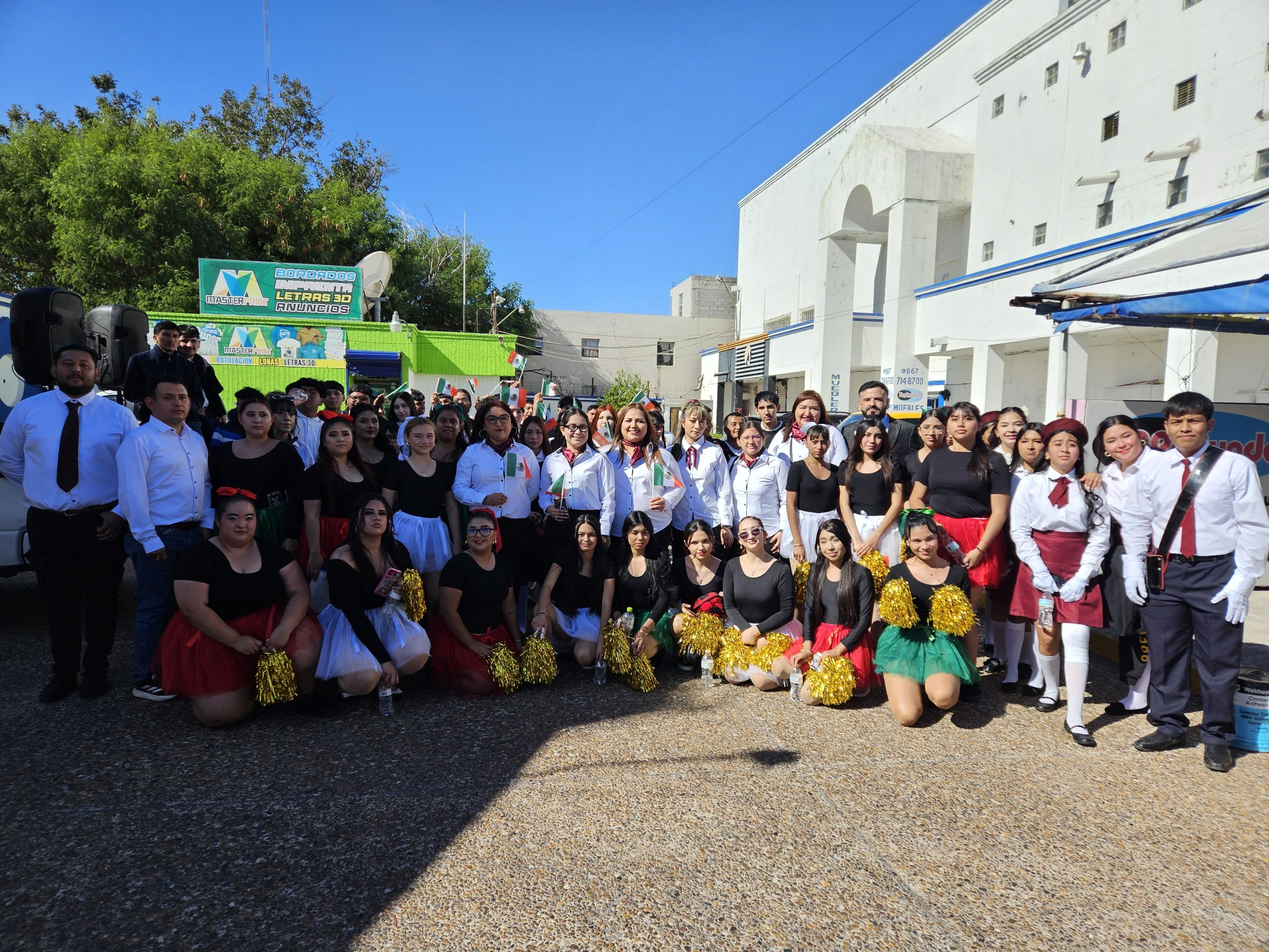 Uno de los momentos más aplaudidos fue la ejecución de una coreografía, un número artístico demostró la preparación y compromiso de los alumnos, quienes trabajaron durante semanas para perfeccionar cada detalle de su presentación. Además, del acompañamiento de un numeroso contingente de estudiantes que añadió un toque al desfile, capturando la atención del público con su impecable ejecución.