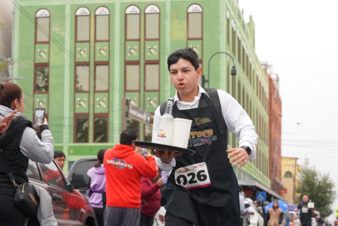 Después de 10 años de ausencia se realizó en Nuevo Laredo la tradicional carrera de meseros, más de 95 trabajadores participaron en esta prueba de destreza y agilidad organizada por el Gobierno Municipal y la Secretaría de Turismo.