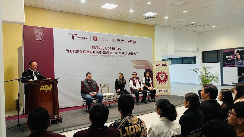 Matamoros, Tamaulipas.– Con el objetivo de apoyar a las y los jóvenes tamaulipecos a continuar y culminar sus estudios universitarios, el Gobierno del Estado, a través de la Secretaría de Educación de Tamaulipas y el Instituto Tamaulipeco de Becas, Estímulos y Créditos Educativos (ITABEC), entregó 800 “Becas Futuro Tamaulipas, Jóvenes Nivel Superior” a estudiantes de la Universidad Tecnológica de Matamoros (UTM).