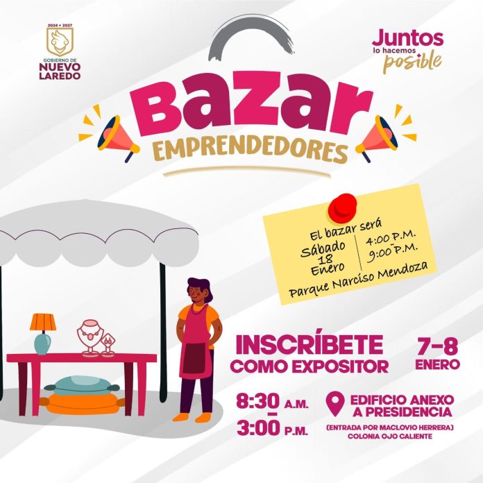 El Gobierno de Nuevo Laredo a través de la Secretaría de Bienestar Social invita a las y los emprendedores locales para que participen en el primer bazar de este 2025.