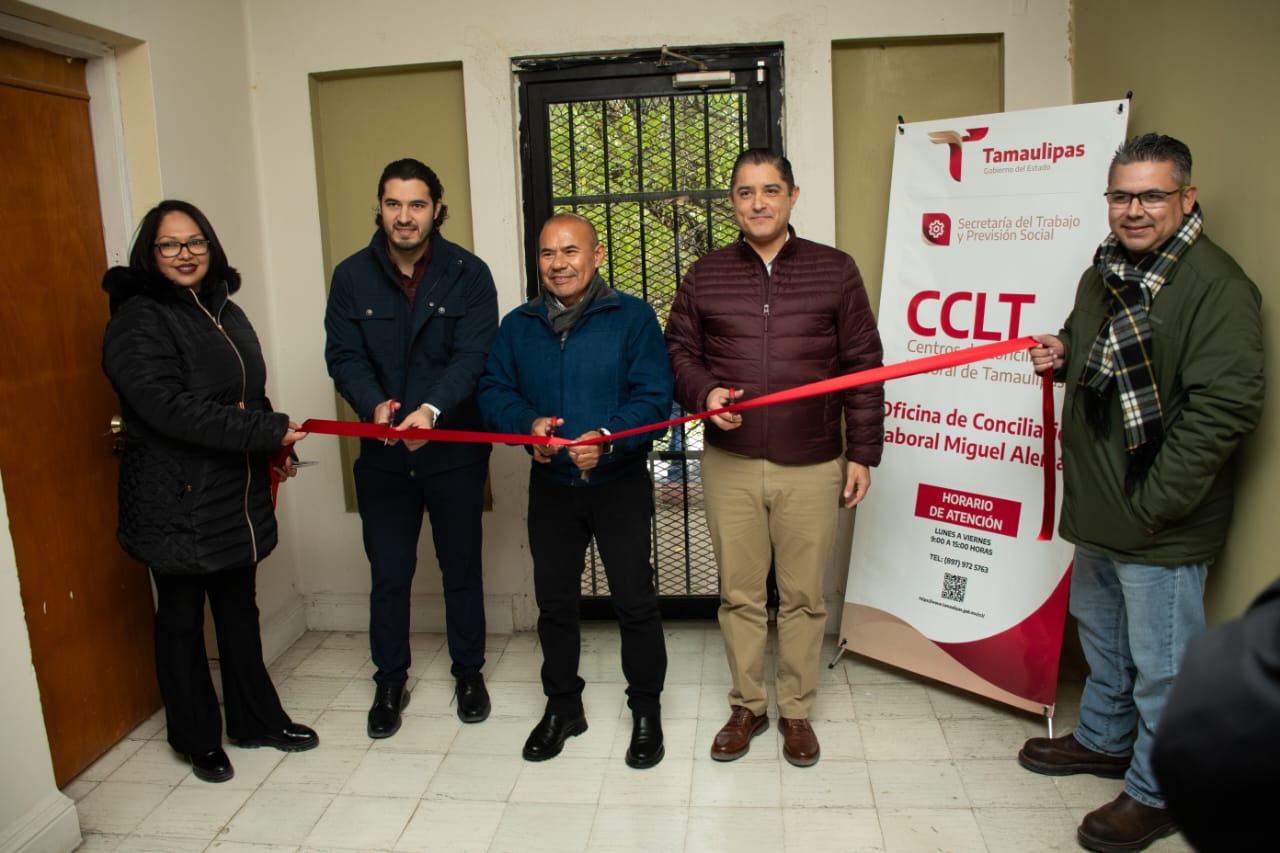 Miguel Alemán, Tamaulipas.- Con la finalidad de acercar la justicia laboral, fue inaugurada la Oficina Regional del Centro de Conciliación Laboral en el municipio de Miguel Alemán, cuya apertura estuvo a cargo de Luis Gerardo Illoldi Reyes, secretario del Trabajo y Previsión Social en Tamaulipas, y del director general del Centro de Conciliación Laboral de Tamaulipas, José Ives Soberón Mejía.
