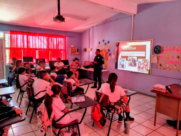 Nuevo Morelos, Tamaulipas.- Como parte de las acciones para prevenir la violencia y conductas antisociales, personal de la Guardia Estatal en el municipio de Nuevo Morelos impartió una plática informativa a estudiantes de la Escuela Primaria Guadalupe Victoria ubicado en el ejido Congregación El Toro.
