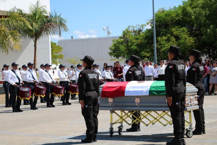 Ciudad Victoria, Tamaulipas. – En su último acto de servicio, el Policía Segundo “A” Luis Alberto García Guevara fue recibido con honores fúnebres en la explanada del Complejo Estatal de Seguridad Pública.