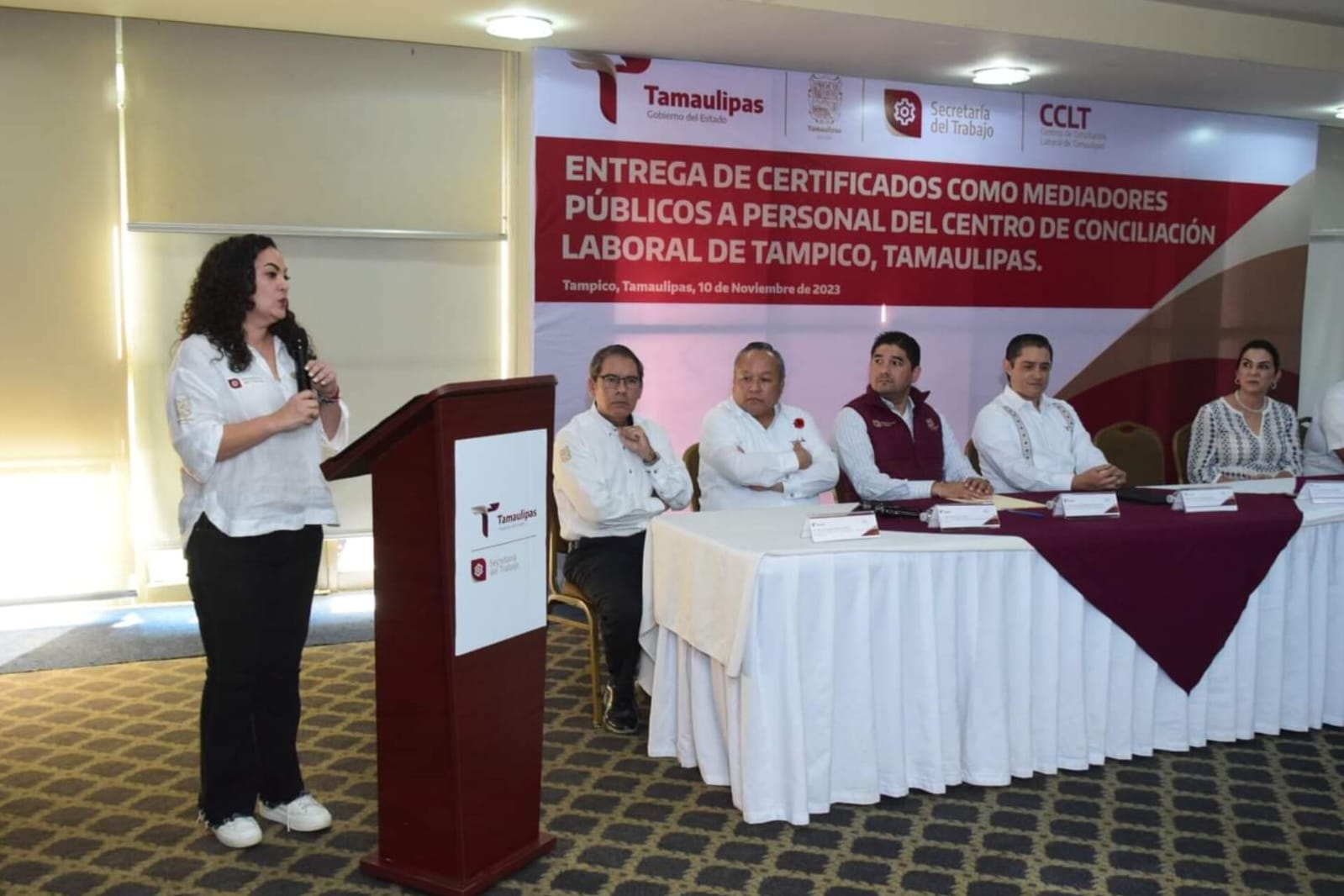Tampico, Tamaulipas.- Servidores públicos pertenecientes al Centro de Conciliación Laboral en Tampico, recibieron su diploma de certificación como “Mediador Público del Estado”, al haber aprobado el examen psicológico y de conocimientos teórico prácticos, por parte de la Dirección de Mediación de la Secretaría General de Gobierno de Tamaulipas.