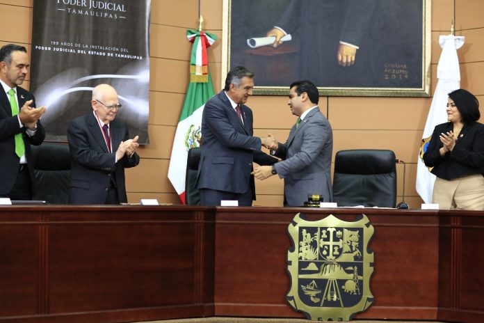 En el marco de la entrega de la presea ‘Emilio Portes Gil’, la máxima distinción que otorga el Supremo Tribunal de Justicia de Tamaulipas, que en esta ocasión correspondió al abogado Aníbal Pérez Vargas, y en la conmemoración del 199 aniversario de la instalación del primer Tribunal Supletorio en la Villa de Viejo Padilla, el gobernador del Estado llamó a los integrantes del Poder Judicial a consolidar una justicia que sea congruente con una visión humanista y que permita la convivencia pacífica y ordenada, sustentando el Estado de Derecho que hace posible el marco de legalidad, donde impere el respeto por las leyes y un honesto cuidado de las normas jurídicas, con la correcta actuación de los tribunales.