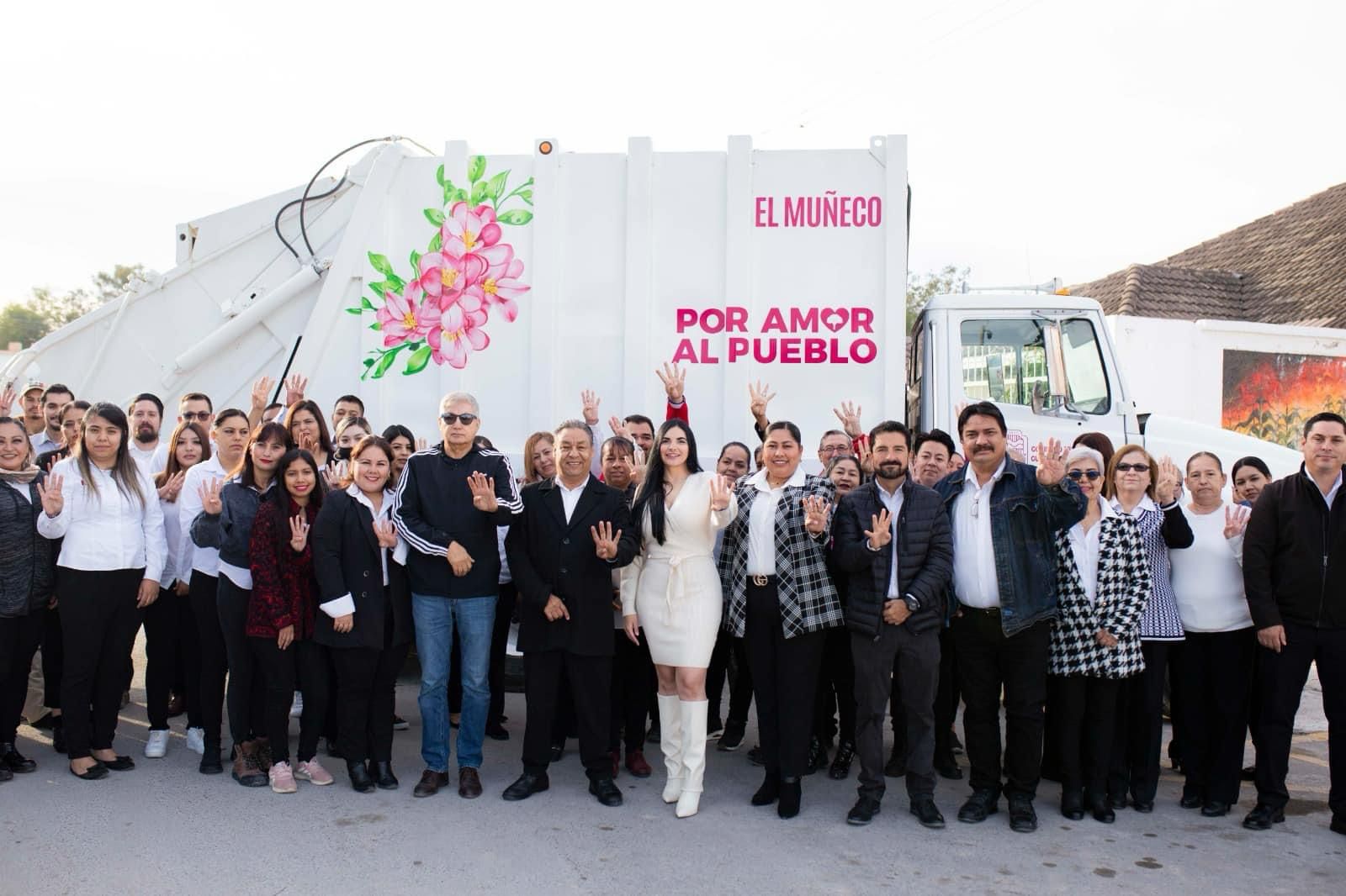 Gustavo Díaz Ordaz, Tam.- En el marco de la ceremonia de honores a los símbolos patrios de los lunes, la Alcaldesa Nataly García Díaz entregó a la Dirección de Obras Públicas al “Muñeco”, un camión recolector de basura, el cual se suma a la cuadrilla para abatir el problema de recolección de residuos que demandaba la ciudadanía.