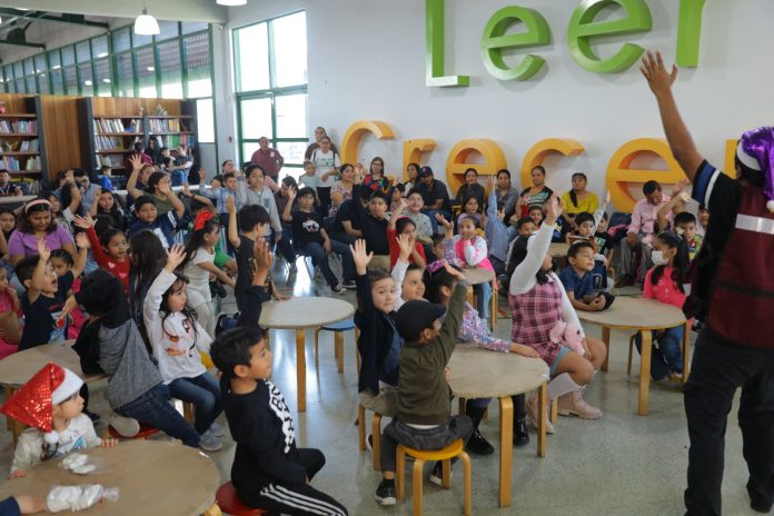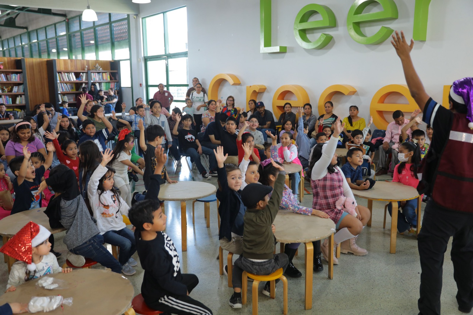 En el transcurso del evento los niños escucharon cuentos de navidad sobre Rodolfo el Reno y el Pino Navidad en el área infantil, además de crear un muñeco de nieve con papel y colores.