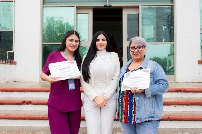 Gustavo Díaz Ordaz, Tam.- La Alcaldesa Nataly García Díaz presidió esta mañana la entrega de constancias de capacitación, “Seis Acciones Para Salvar Una Vida”, impartida por el Coordinador de Promoción a la Salud de la Jurisdicción Sanitaria IX Lic. Jeheziel Arnoldo Rojo Olvera.