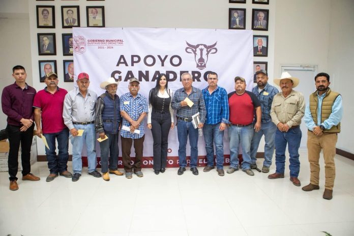 Gustavo Díaz Ordaz, Tam.- En una sencilla pero muy significativa ceremonia, la Alcaldesa Nataly García Díaz hizo entrega de la primera etapa de apoyos del “Programa Ganadero para una Producción Sustentable”, creado por la Dirección Municipal de Desarrollo Rural.