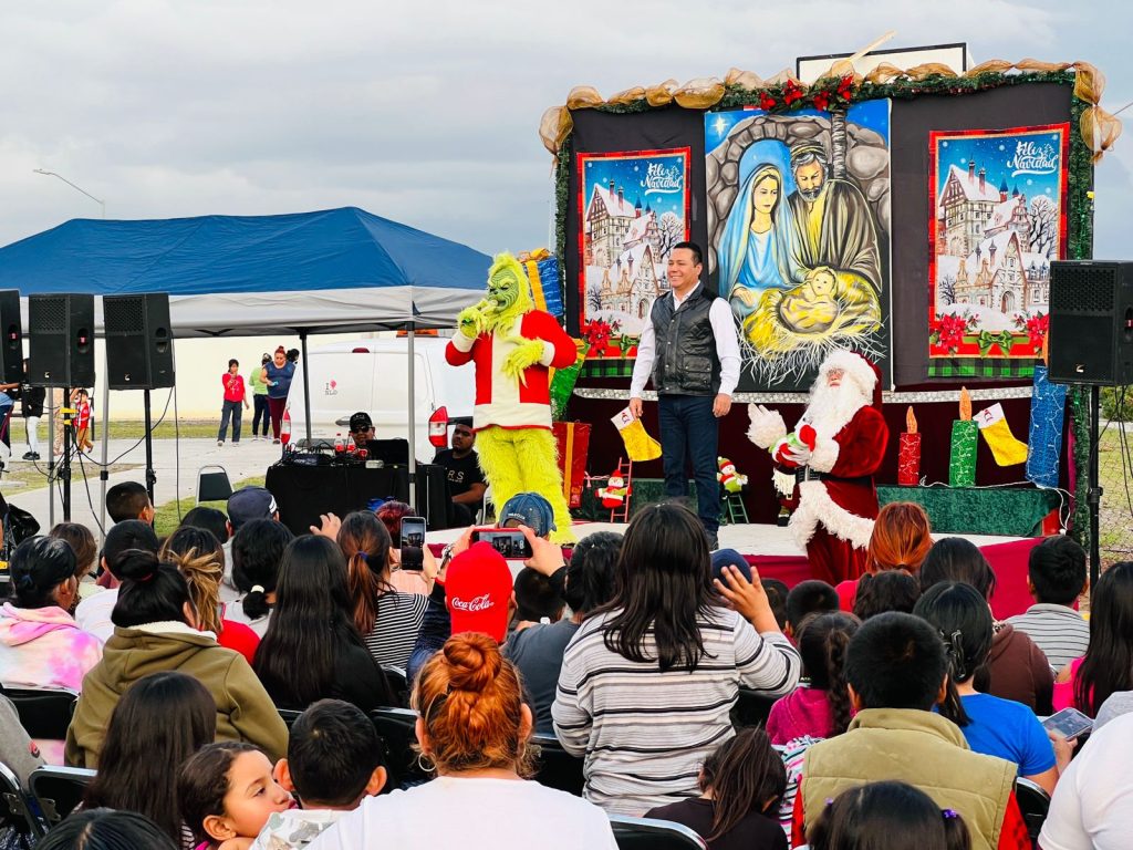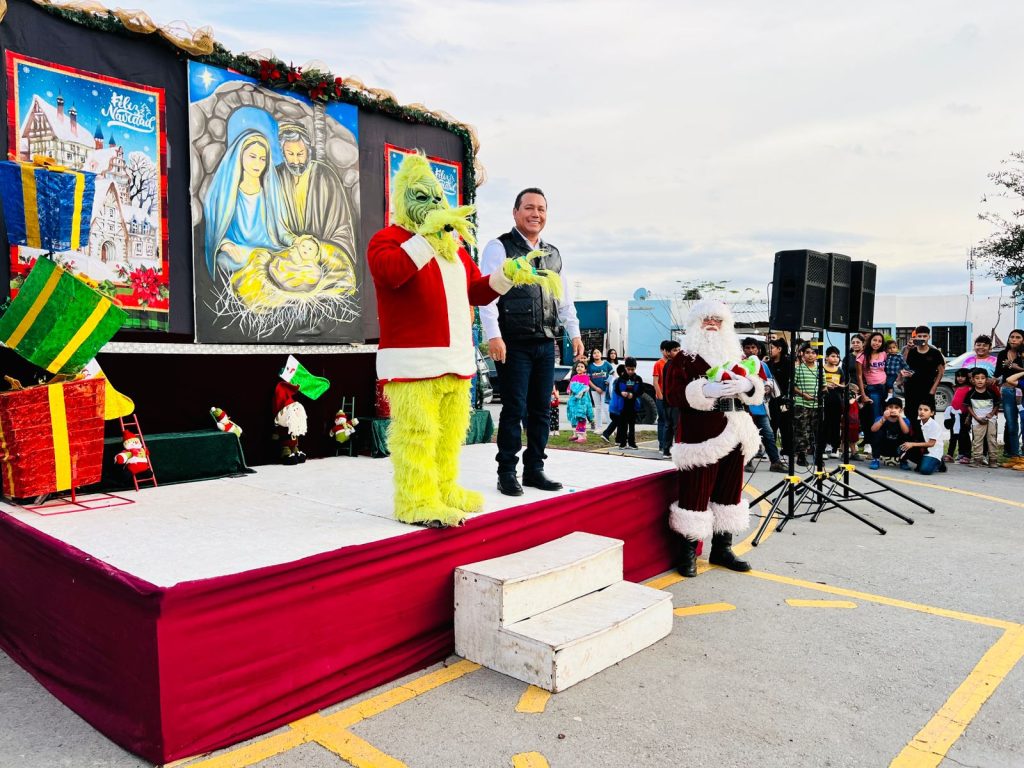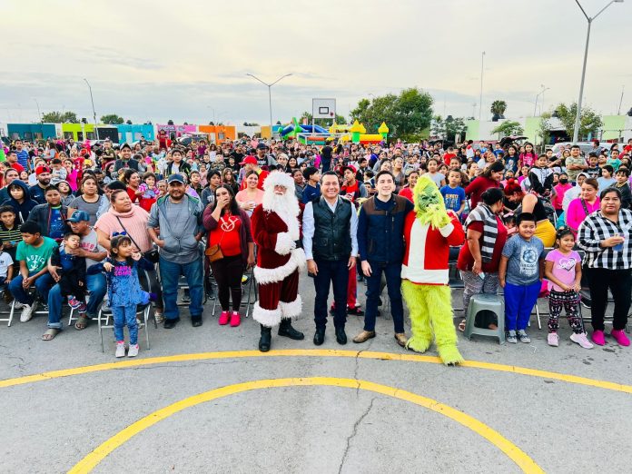 “Parte del sector está aquí, todos los comités, todas las familias, todos los niños, muy contentos con nuestra presidenta municipal Carmen Lilia Canturosas Villarreal que nos haya dado la oportunidad de ser el séptimo regidor de estas colonias, que son Reservas Territoriales, Colorines, El Progreso, Nuevo Progreso y Valles de Anáhuac, celebrando la festividad navideña.” dijo Santos Francisco Hernández Aguilar.