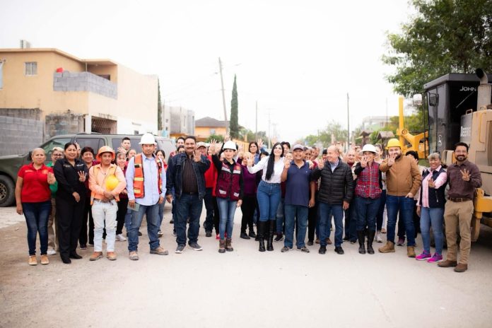 Gustavo Díaz Ordaz, Tam.- El trabajo en equipo de los tres niveles de gobierno continua dando frutos, y se confirma al dar la Alcaldesa Nataly García Díaz, el banderazo de arranque a una obra de pavimentación de dos cuadras en la calle octava en la cabecera municipal y una más en la calle Hidalgo de Congregación Valadeces.