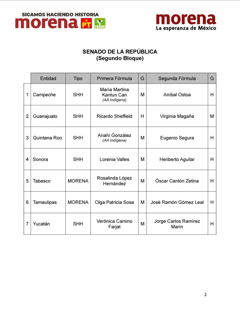 Sin dar a conocer los resultados, el Comité Ejecutivo Nacional dio a conocer una lista de siete entidades, donde fue incluida Tamaulipas, Campeche, Guanajuato, Quintana Roo, Sonora, Tabasco y Yucatán. En esos casos destaca la aspirante indígena María Martina Kantun Can.