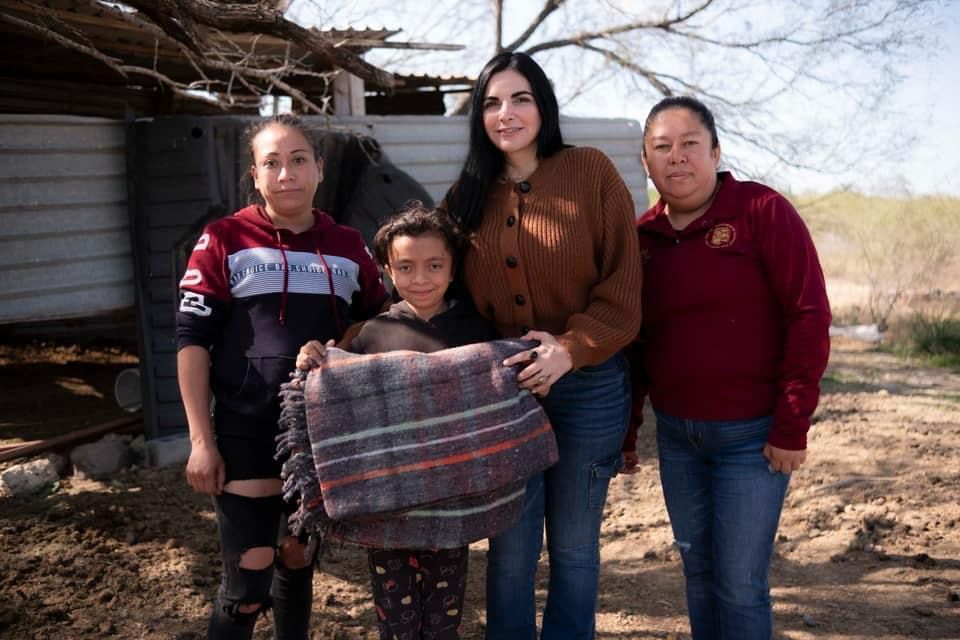 Acompañada con el equipo de Atención Ciudadana y funcionarios del ayuntamiento, la Alcaldesa inició el recorrido en el Rancho Piedras al sur del municipio donde entregó las primeras cobijas, para continuar en el Rancho San José y los ejidos Marte R. Gómez y Miguel Hidalgo.