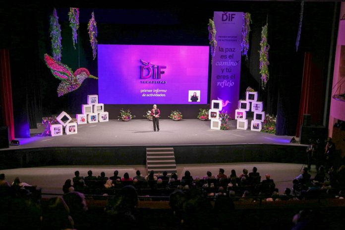 Ciudad Victoria, Tamaulipas. Teniendo como marco el Teatro Amalia González Caballero de Castillo Ledón de esta ciudad, y acompañada de su esposo el doctor Américo Villarreal Anaya, gobernador del estado, la doctora María de Villarreal, presidenta del Sistema DIF Tamaulipas, presentó su primer informe de actividades al frente de esa institución, con el lema “La paz es el camino, y tú eres el reflejo”.