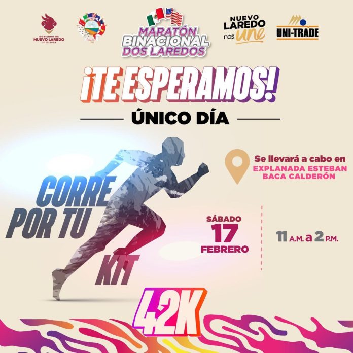 Este maratón que se llevará a cabo el 18 de febrero, es único en el mundo, ya que su trayecto de 42 kilómetros abarca dos países, iniciando su recorrido en la Plaza Jarvis de Laredo, Texas para concluir frente al Palacio Federal de Nuevo Laredo.