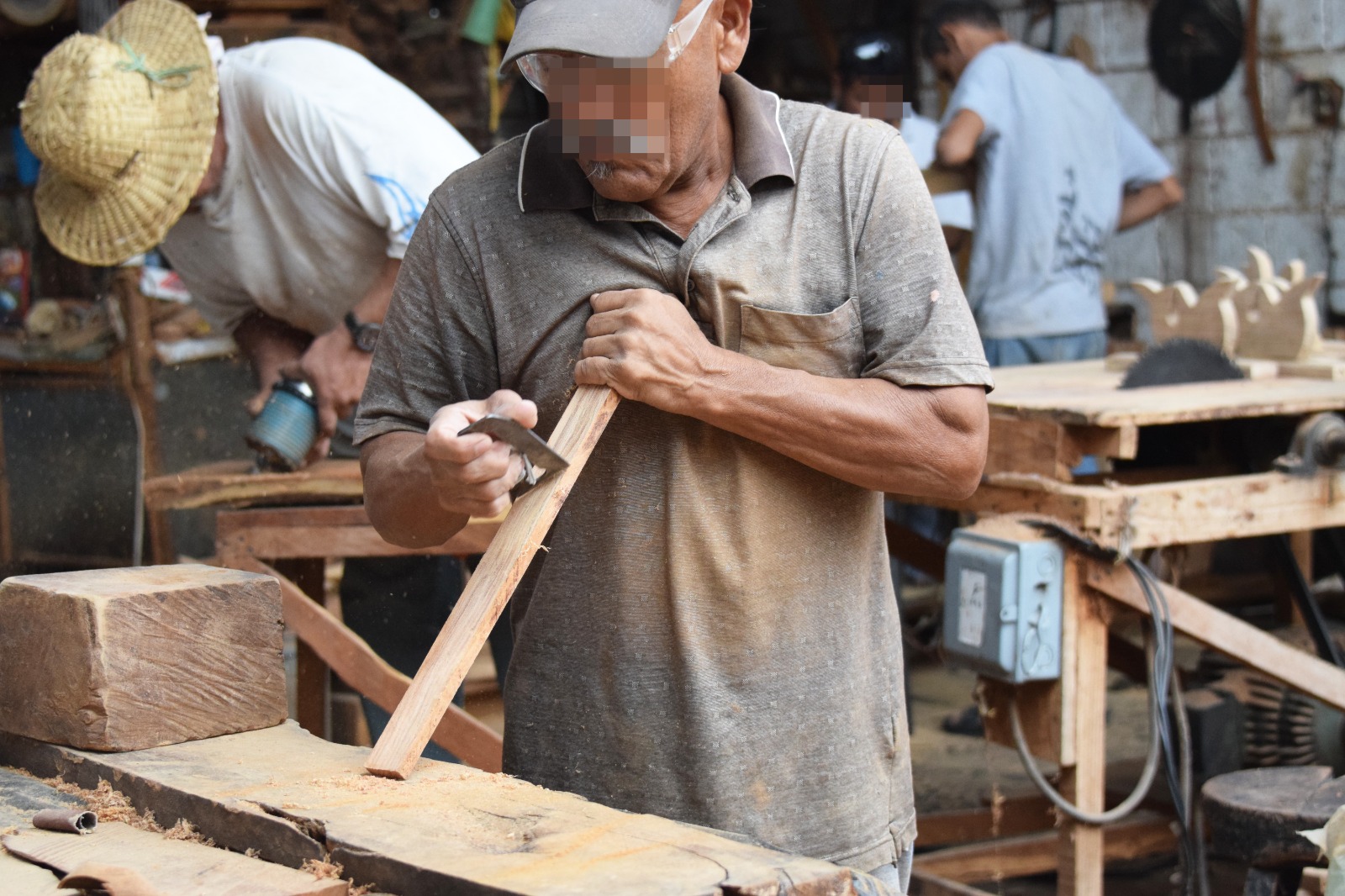 Su experiencia le ha permitido trabajar piezas como mecedoras, cuya materia prima es principalmente madera de mezquite y ébano, aunque también trabaja el pino y el cedro, creando desde utensilios de cocina hasta muebles más elaborados a petición del cliente; artículos promovidos para su venta a través de la Secretaría de Seguridad Pública de Tamaulipas (SSPT).
