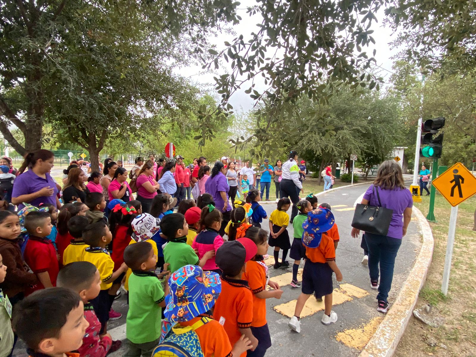 Guiados por los instructores del Departamento de Tránsito y Vialidad, Oscar González García y Ana Isabel Arévalo López, aprendieron sobre señalamientos horizontales (cruces peatonales y línea central continua), además del significado de los colores del semáforo, utilizando para ello una canción relacionada.